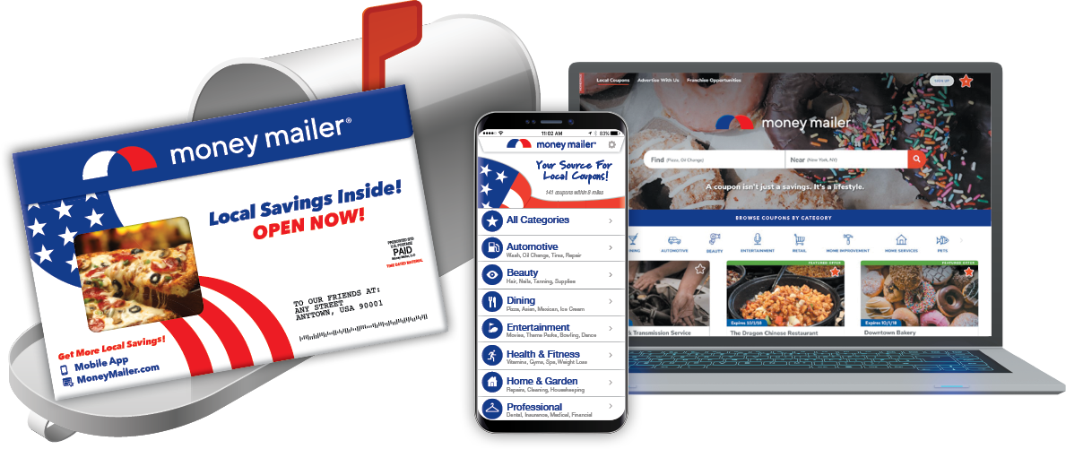 Money Mailer®advertising offers a perfectly integrated suite of print and digital marketing solutions that work together to reach your customers wherever they are and however they want!